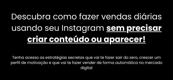 E por isso hoje, você poderá ter acesso a mesma metodologia que eu utilizo para vender com Páginas de Nicho no Instagram sem precisar aparecer!